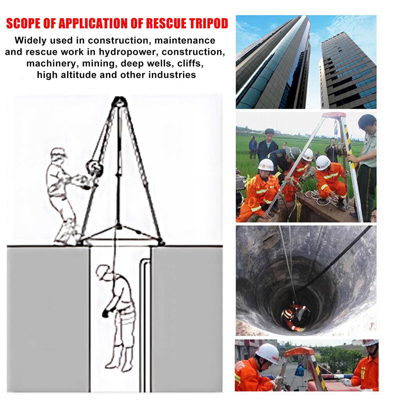 Guanhang Aluminum Alloy Lifting Tripod brings forth numerous remarkable advantages when utilized in hole and wellhead operations. To begin with, the lightweight yet exceptionally sturdy construction made of aluminum alloy renders it highly portable and effortless to handle within confined spaces, facilitating rapid setup and streamlined operation.